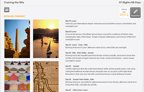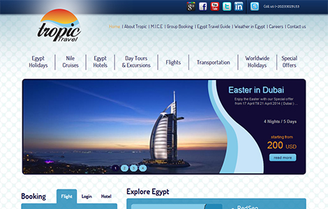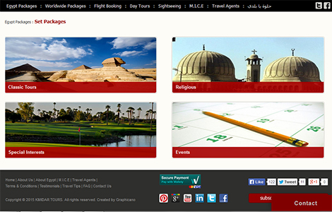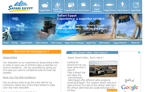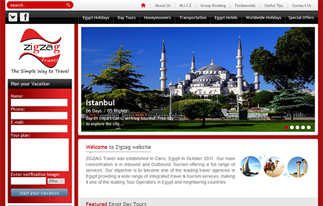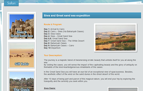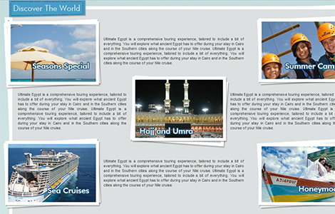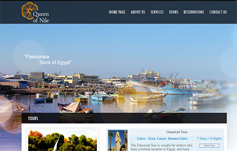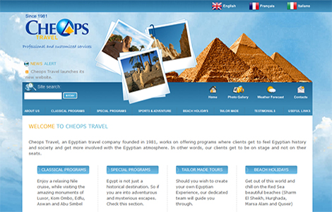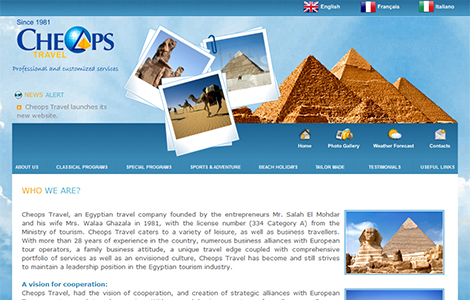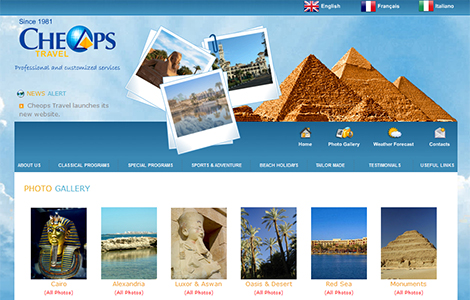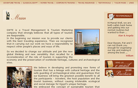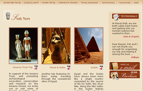 Travel agency based in Egypt, website having a testimonials section, gallery, different tours sections, and nice flash banner
