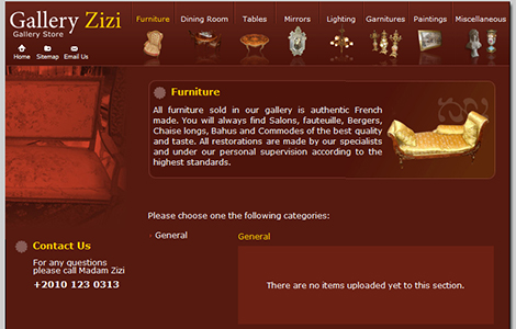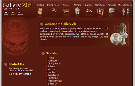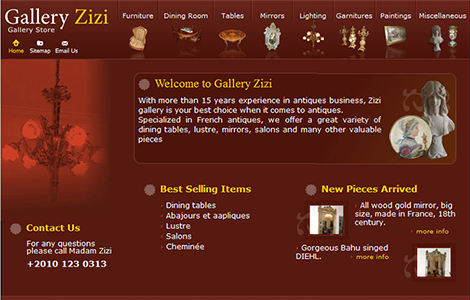 Gallery Zizi is more than 15 years experience in antiques business. Website design, development and database for gallery stock.