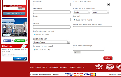 Website design and development for ISIS Travel, newsletter module, online chat, tailor made comprehensive form, etc ...
