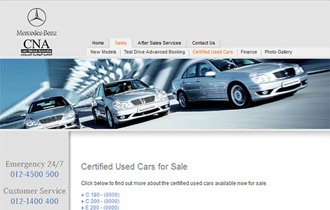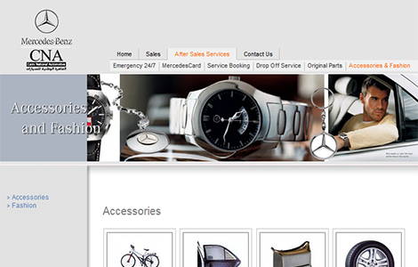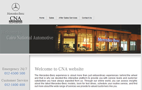 Cairo National Automotive (CNA) Mercedes website, photo gallery, accessories and fashion shopping area, new models secti
