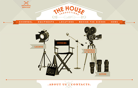 Production company, displaying showreel, locations, equipments, behind the scenes, with clients area for upload and down
