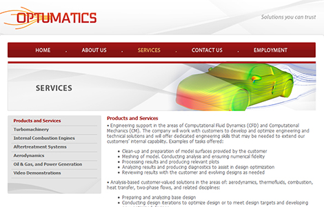 Computation Fluid Dynamics website ... Services sections developed to bear unlimited number of sub-sections uploaded using Gr