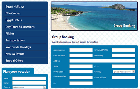 Tour leader simple website, displaying packages, destinations and various travel information to Egypt.