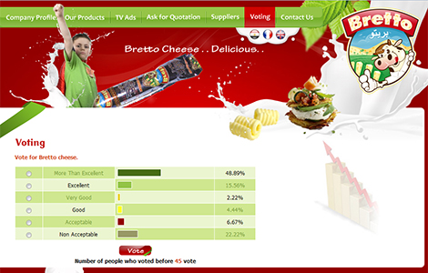 A "Family Foods" company new cheese product "Bretto", website is designed with animation, forms requests.