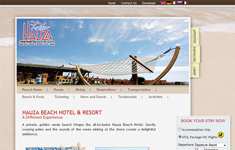 Sharm El Sheikh hotel in 5 languages, having flash banner with slight sea and pool water movement.