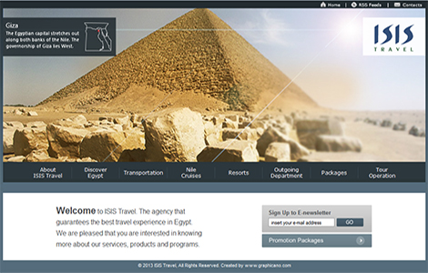 Travel agency website, with different links expressing ancient egyptian history beside agency's main services.