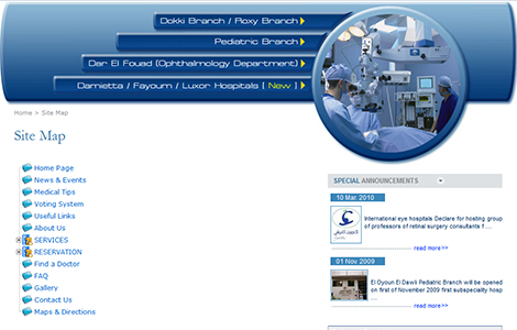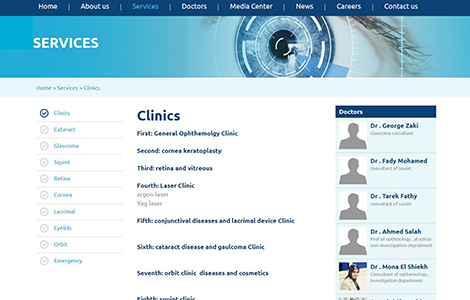 The most updated specialized eye hospitals in the Middle East with six branches all over Egypt. Website displaying all doctor