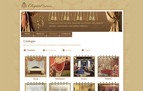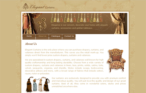 Curtains, goblan, accessories and textile website gallery with nice curtains like display.