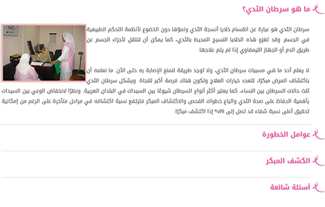 BCFE's mission is to promote breast health through breast cancer awareness. Website is developed in two languages (Arabic
