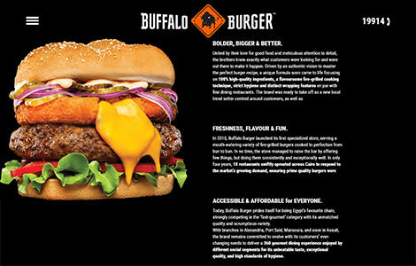 New Buffalo Burger website launched in 2019, development and backend by Graphicano.
