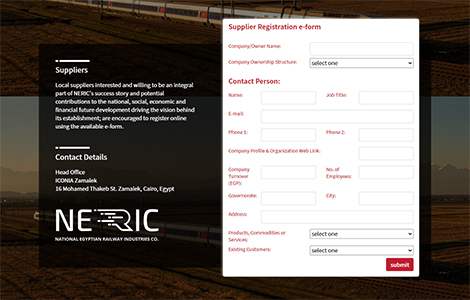 National Egyptian Railway Industries Company (NERIC) is a private joint-venture company formed by a group of Egyptian companies in partnership with Governmental entities.
