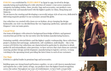 ENIGMA was established by ELITE GROUP in Egypt in 1999, involved in design, manufacturing and marketing of a wide selection o