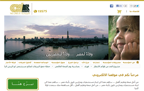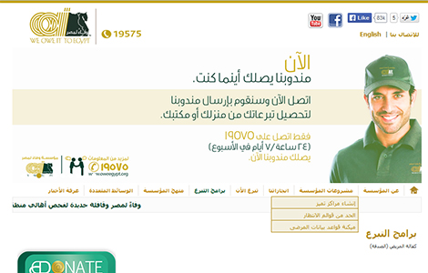 Non profit foundation website care of Arab African Bank with online donation facilities for two languages, multimedia video a